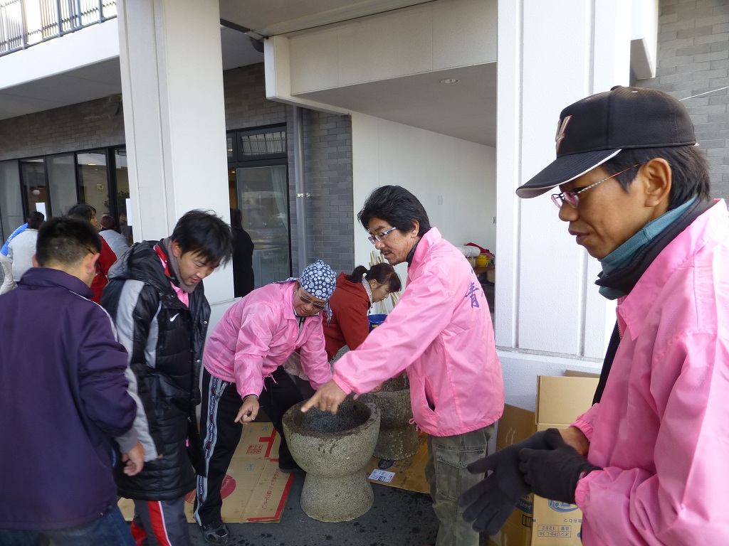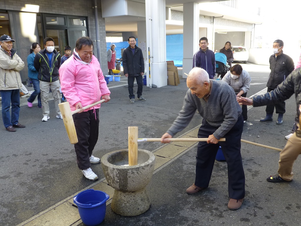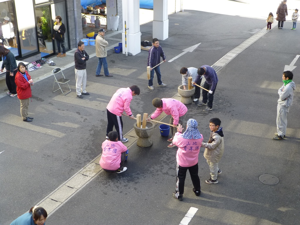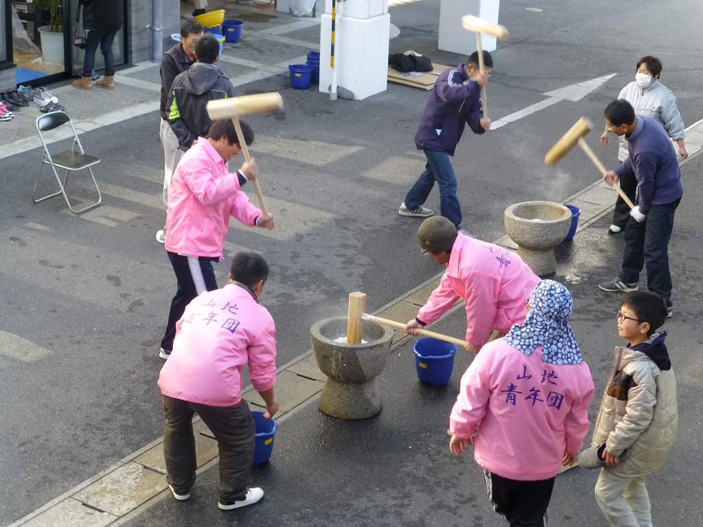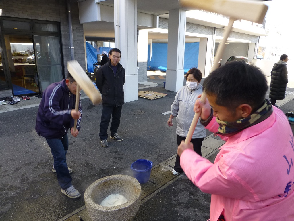 ここ何年もこうして、餅つきのボランティアが続いてます