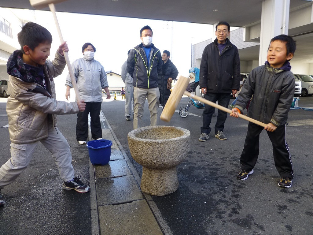 親子競演の餅つきもあります